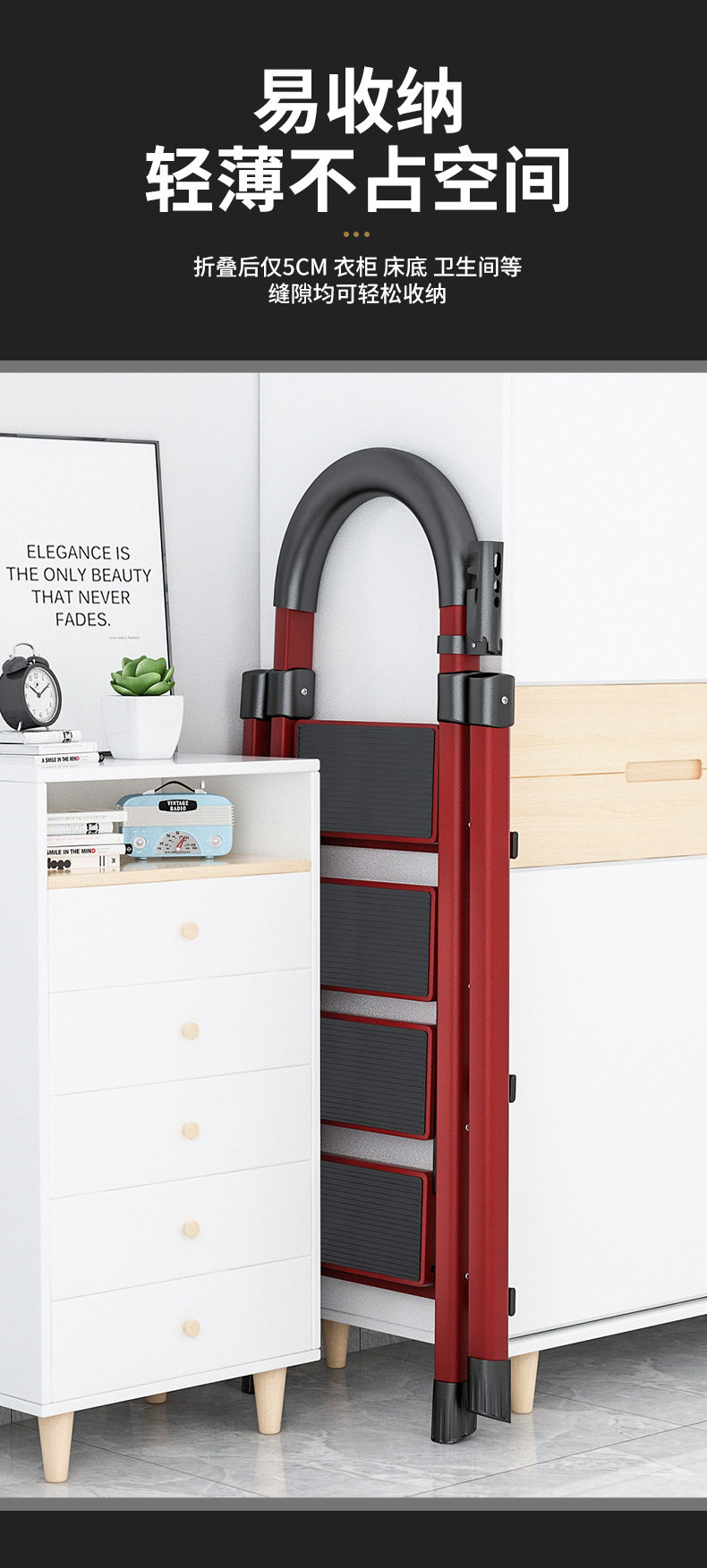 Бытовая лестница, домашняя многофункциональная складная переносная лестница, легкая телескопическая противоскользящая лестница «елочка», четырехступенчатая, пятиступенчатая лестница