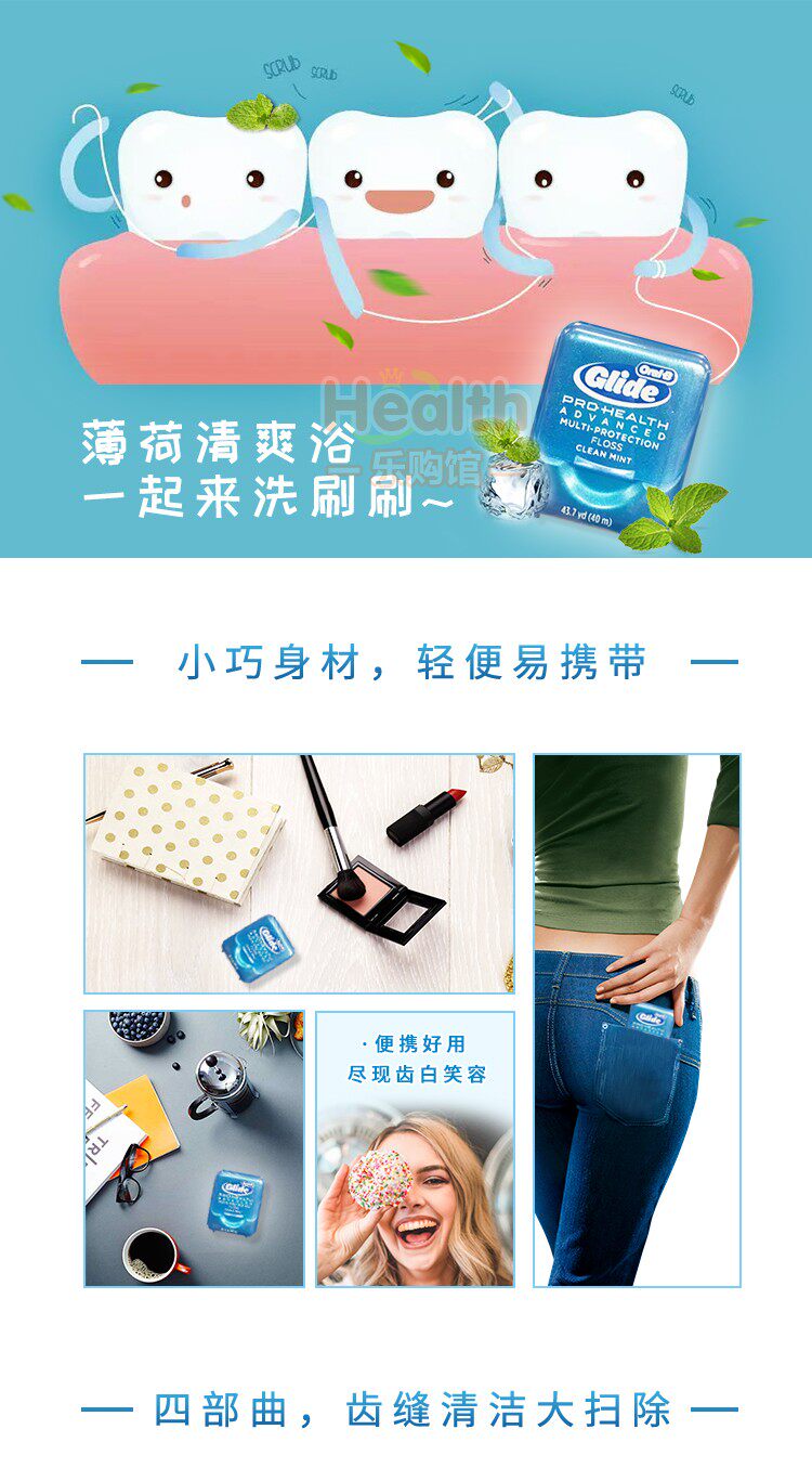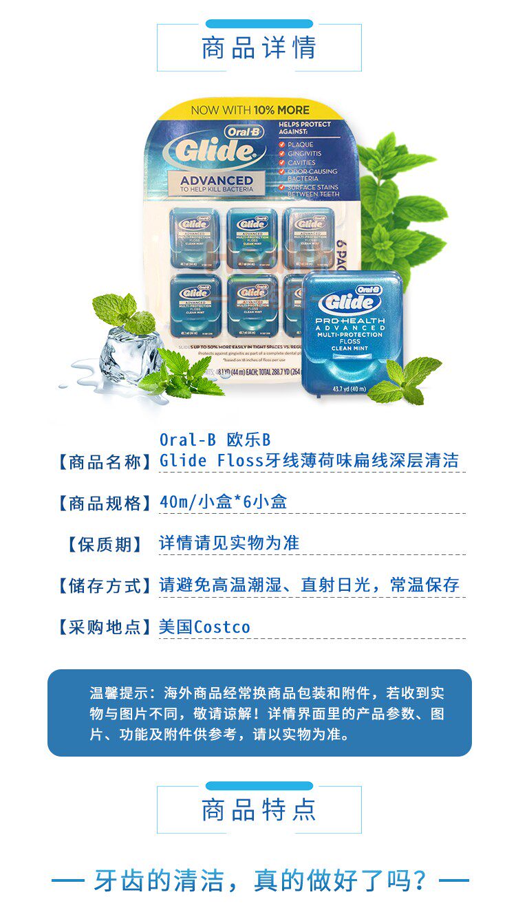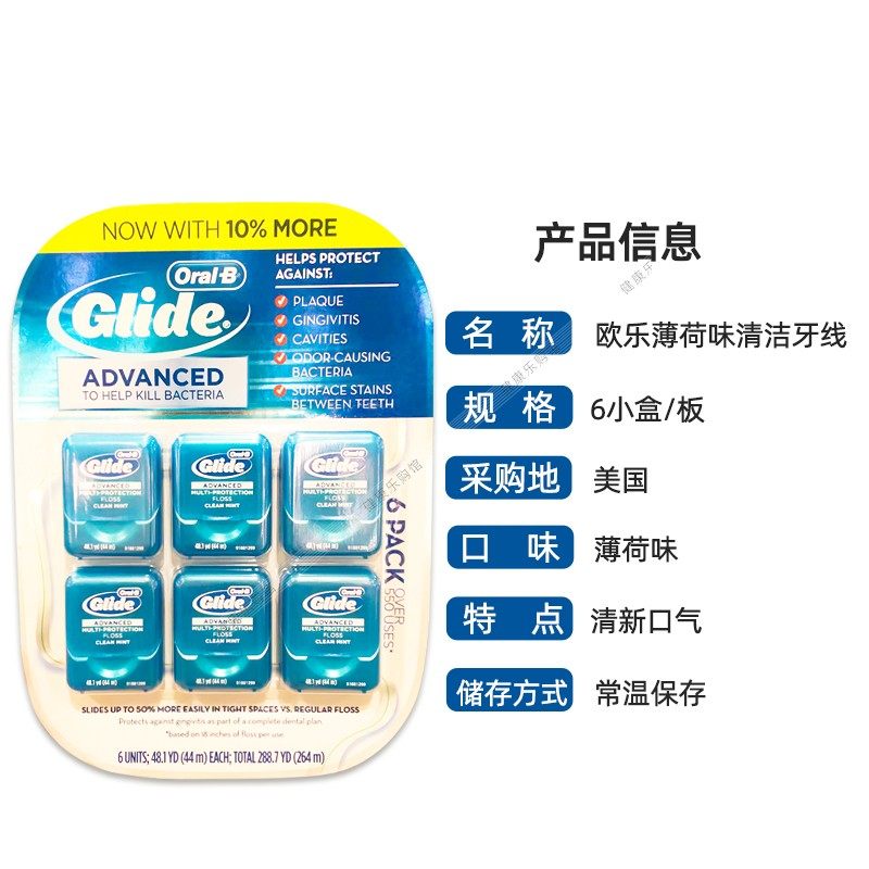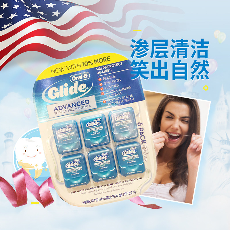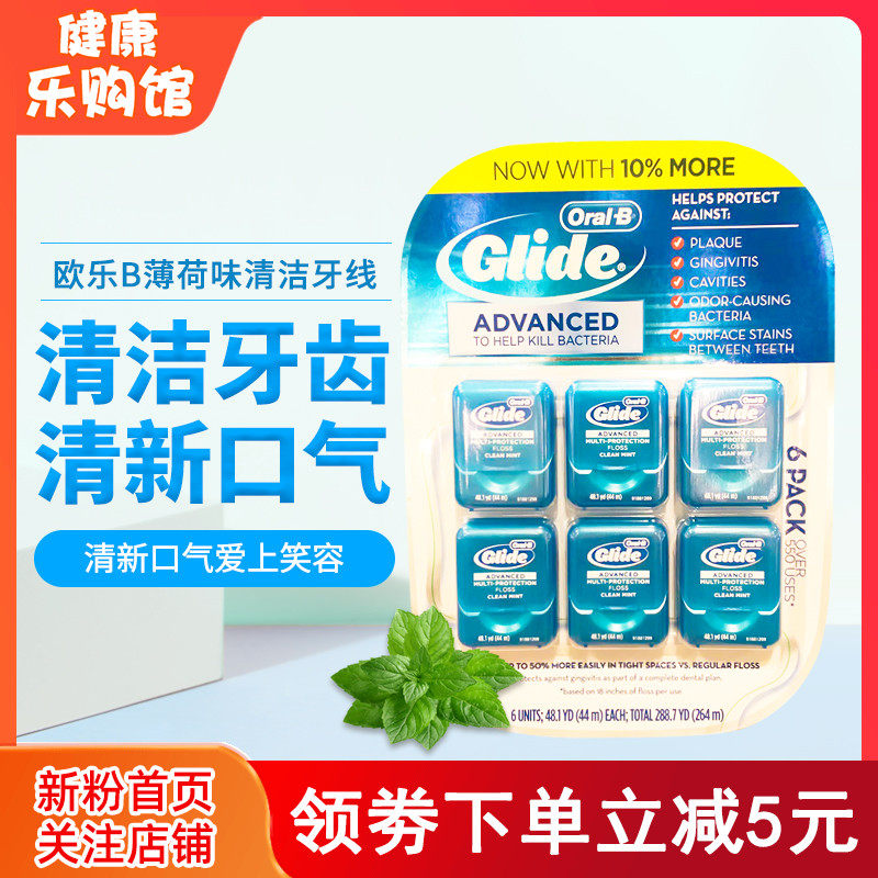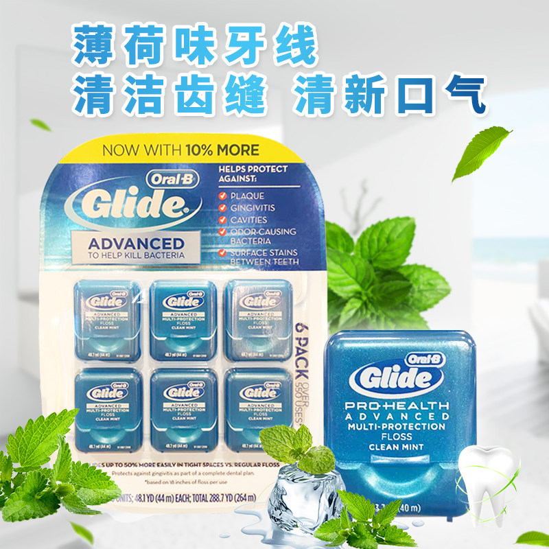 Американская прямая почтовая рассылка Oral-b-ouile B Mint Flavor Dental Wrals Glide Wrish Flass Flat Line Deep Cleansing 6 маленьких коробок
