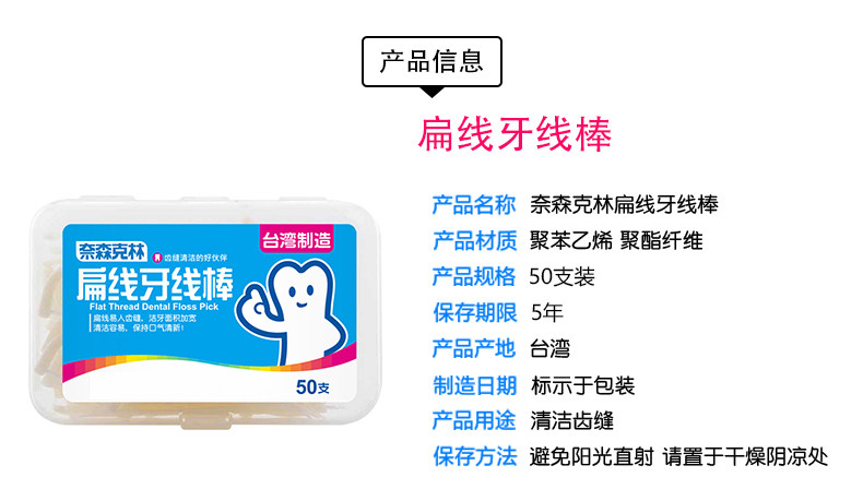 奈森克林 Зубная нить, банка для хранения, 50 шт
