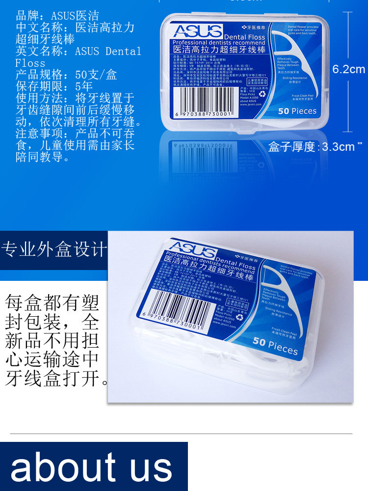 Asus, безопасная гигиеническая зубная нить, 50 шт