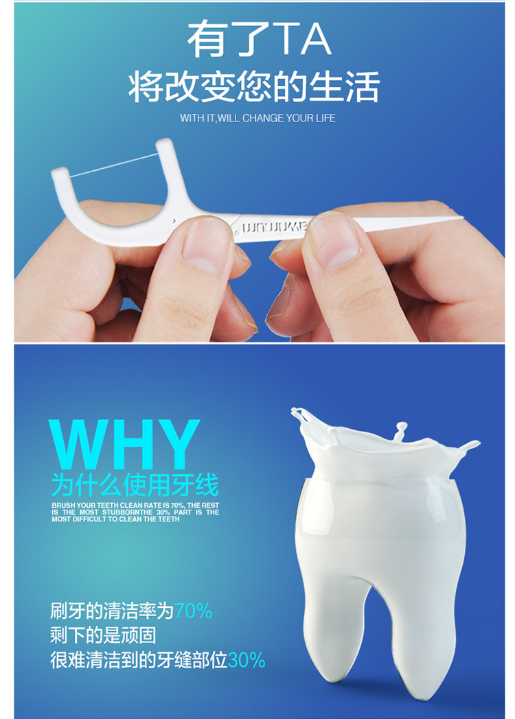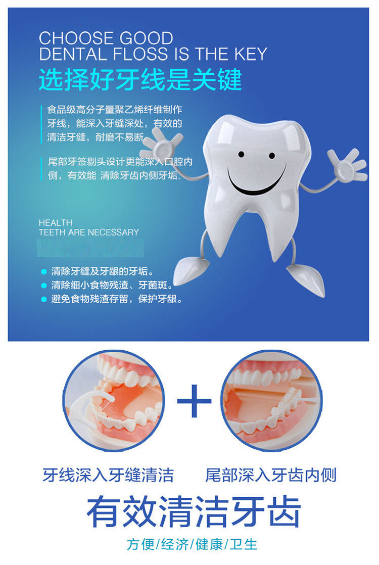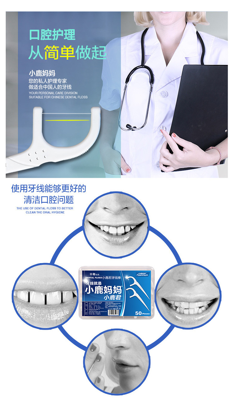 Классическая безопасная зубная нить, 50 шт