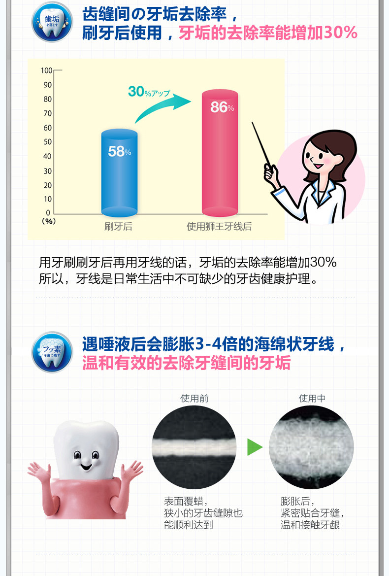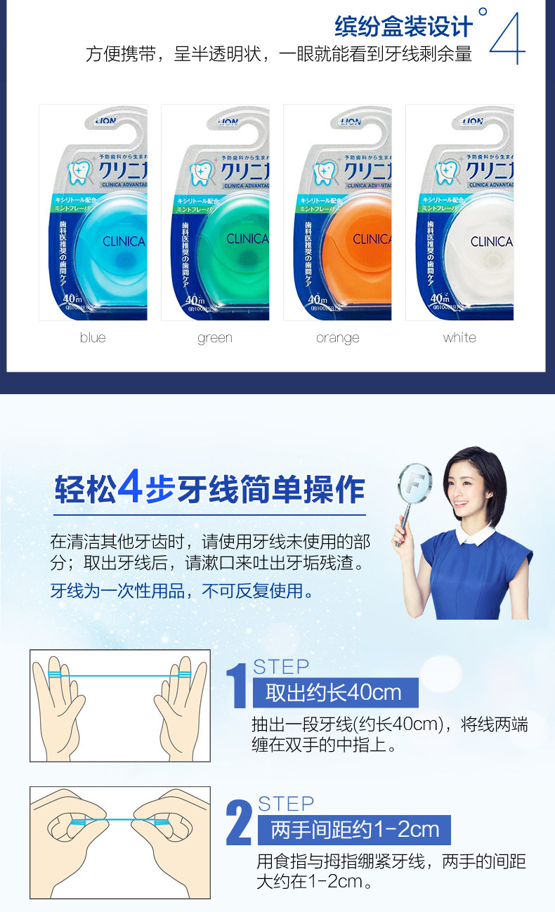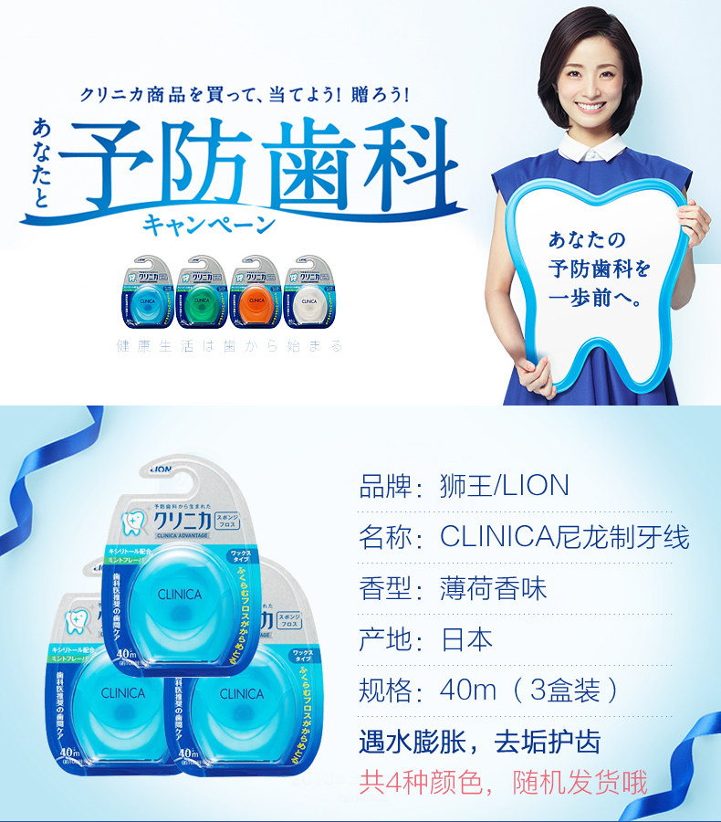 [Прямой бизнес] 3 коробки японского льва King Clinica Nylon Dental Whross 40M Portable Import Ultra -Fine Tooth Pick