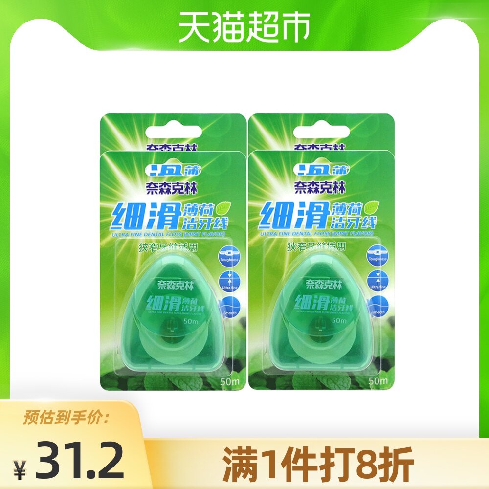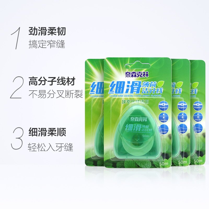 奈森克林 Мелкая скользящая зубная нить (мята) 50 м*4 узкие зубные суставы применимы
