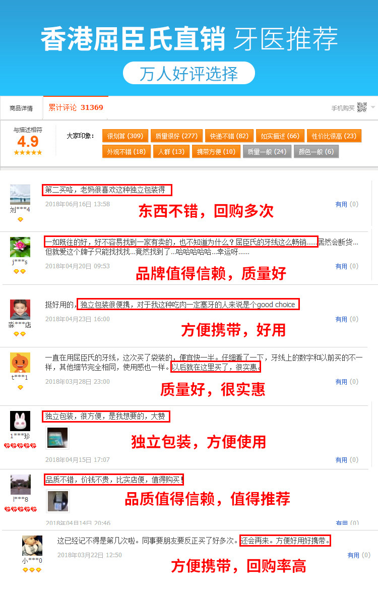 Watsons, зубная нить, портативная упаковка, 100 шт