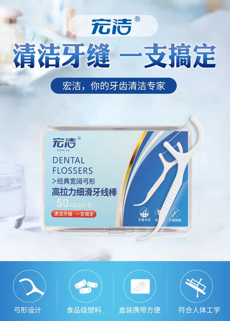 宏洁 Коробка Ultra -Fine зубной нитья Домашняя нагрузка до зубов зубов зубов.