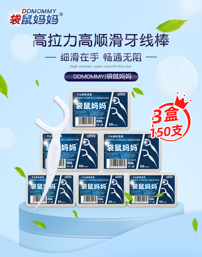 Кенгуру, классическая безопасная зубная нить, 150 шт