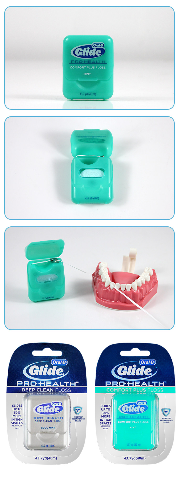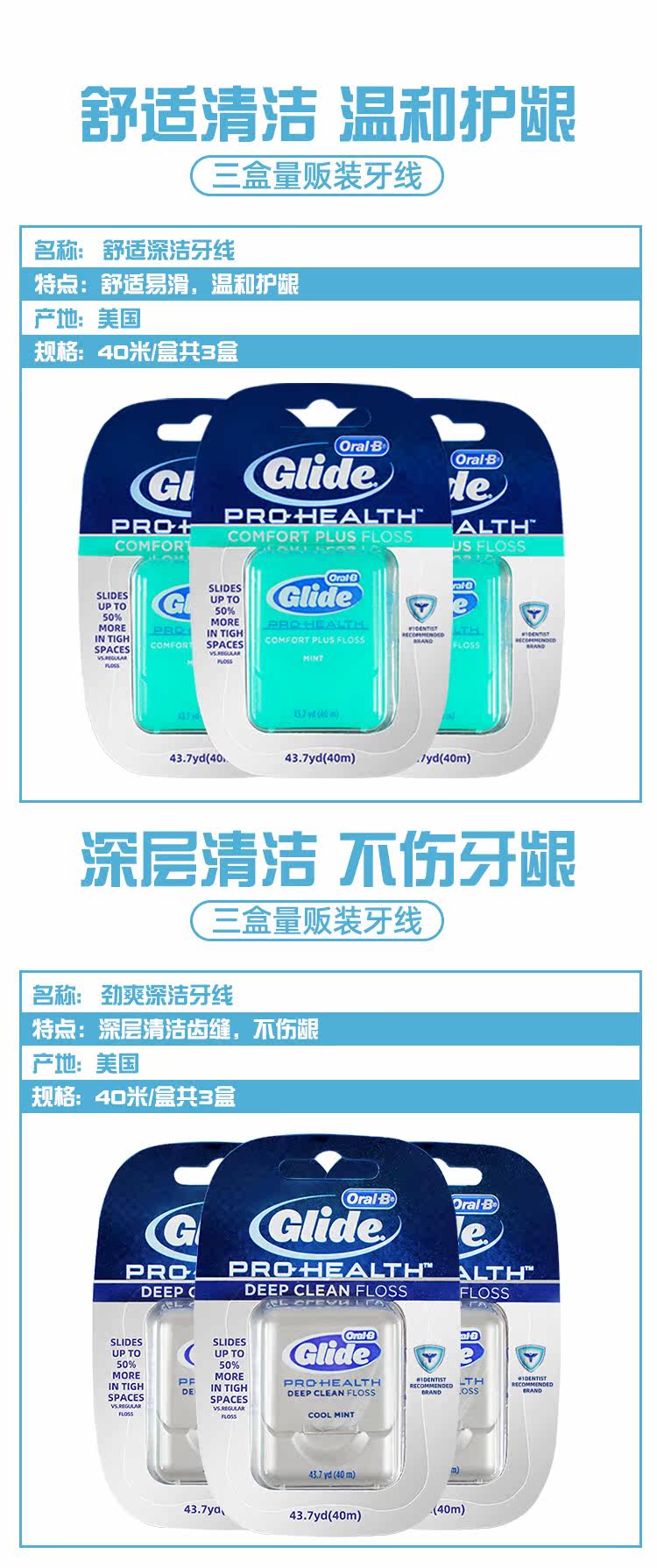 Американская оралба оле B Комфортный глубокий чистый глиняный зубной зубной зубной нить широко расчинутый мятный мятой шить 40 метров 3 коробки