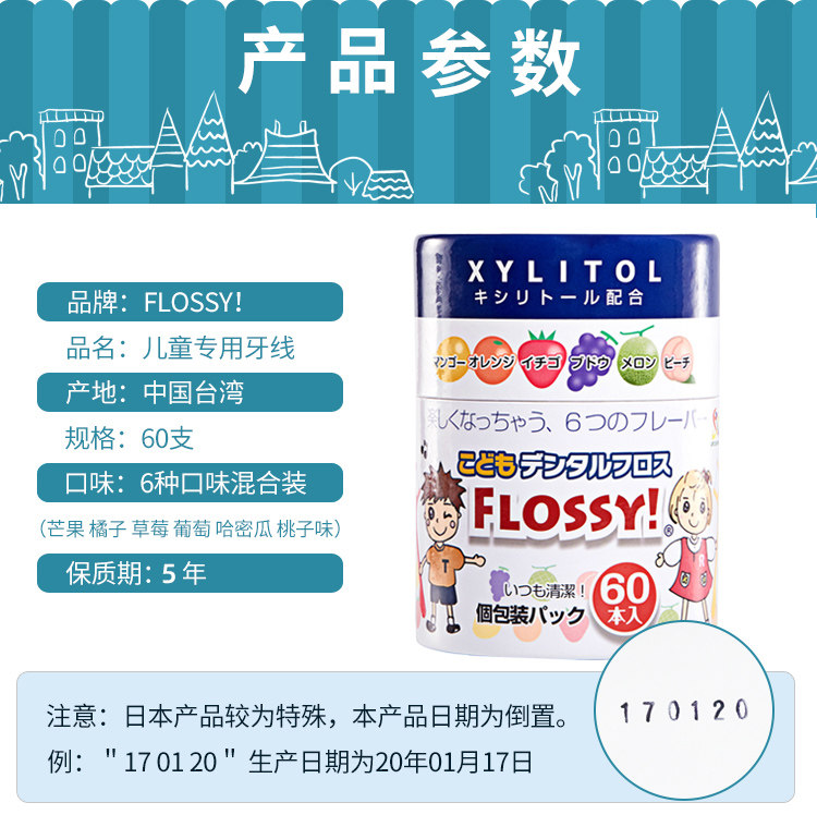 Японская импортная детская зубная нить для детских зубов, 60 шт, фруктовый вкус