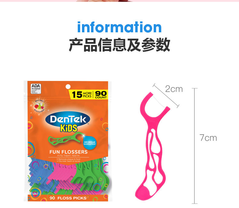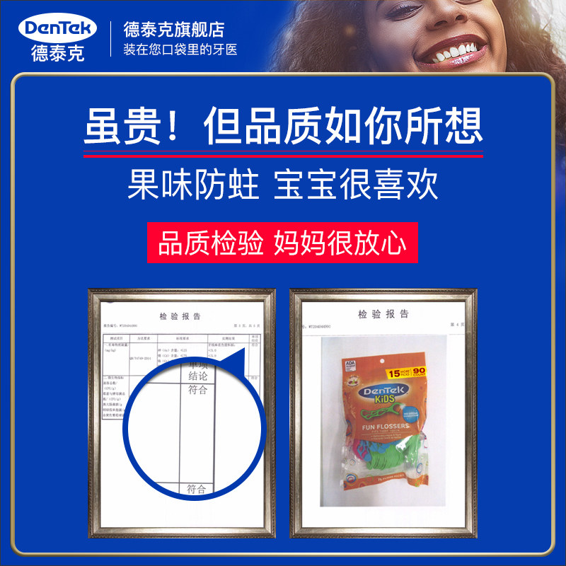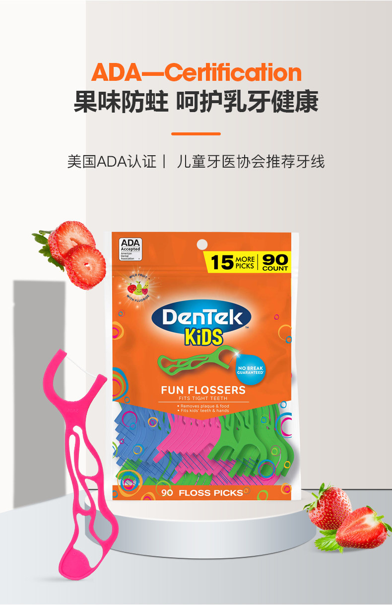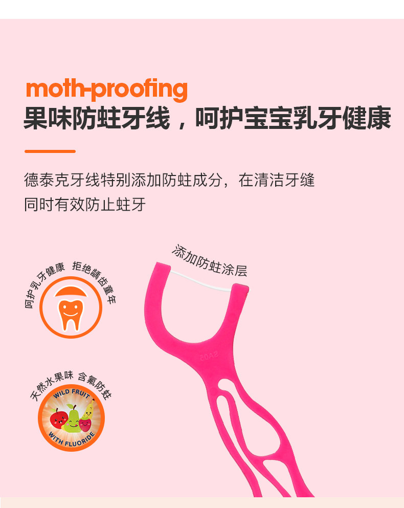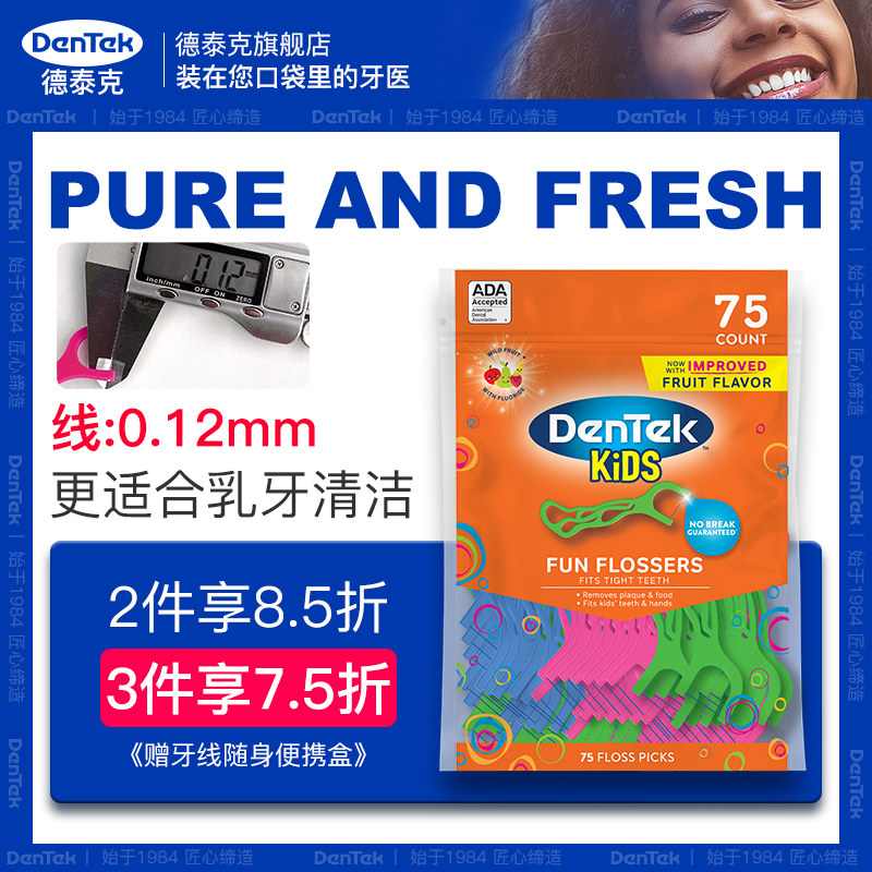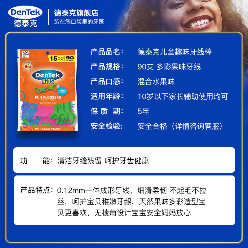 德泰克 Импортная зубная нить для детских зубов, детская упаковка, фруктовый вкус, 90 шт