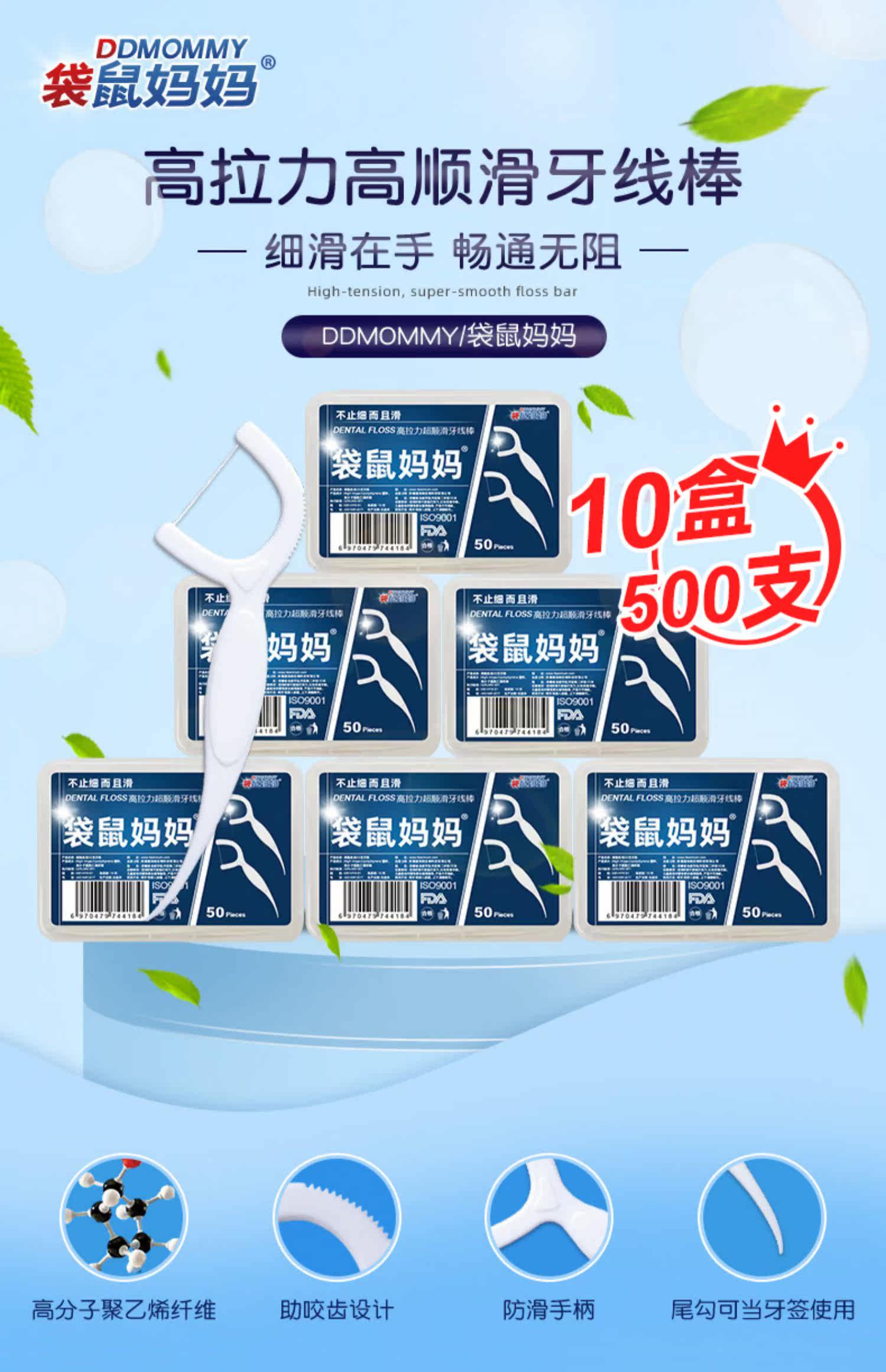Кенгуру, классическая безопасная гигиеническая зубная нить, 500 шт