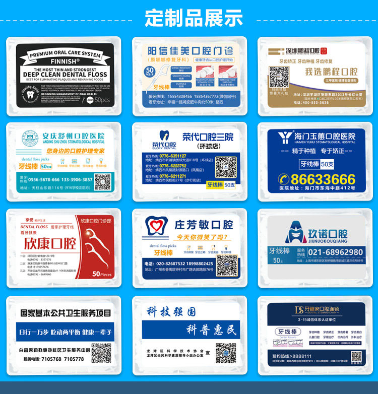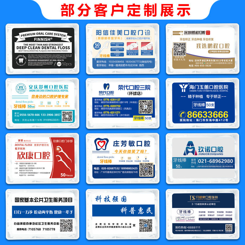 Оральная зубная нить, делается под заказ, с печатью вашего логотипа, 50 шт
