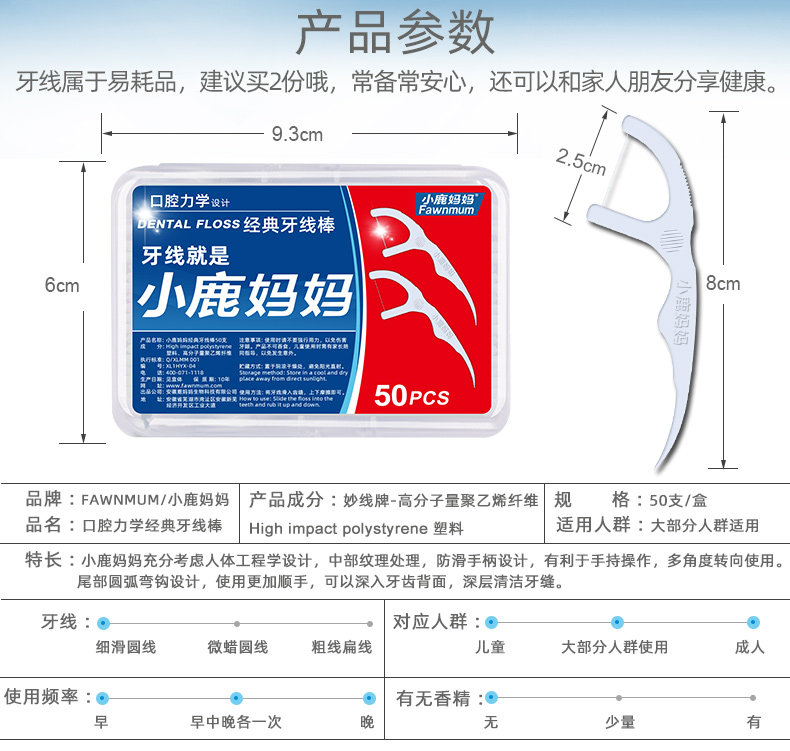 Маленькая оленя мать классическая ультра -нажичная зубная зубная нить Деривативы одноразовая зубочистка для кормления дом дома дом дом
