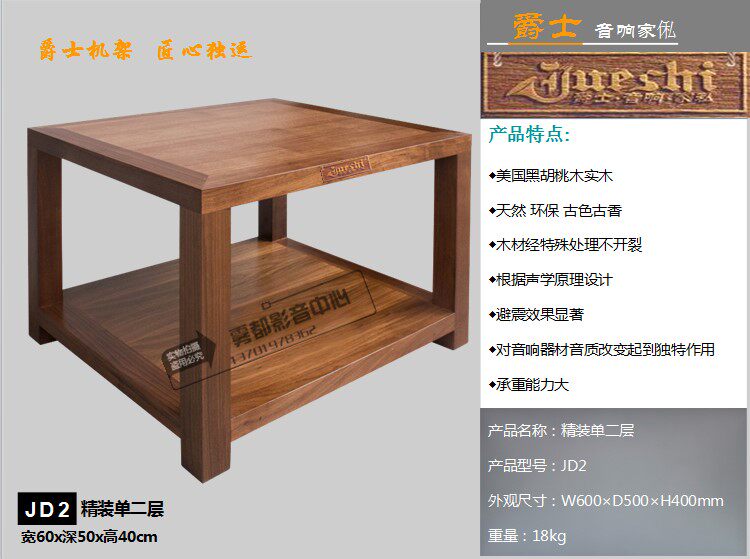 Джазовый налет с твердым деревом звуковой шкаф JD2 в твердом переплете с двумя слоями рабочего места Hifi Rack Rack