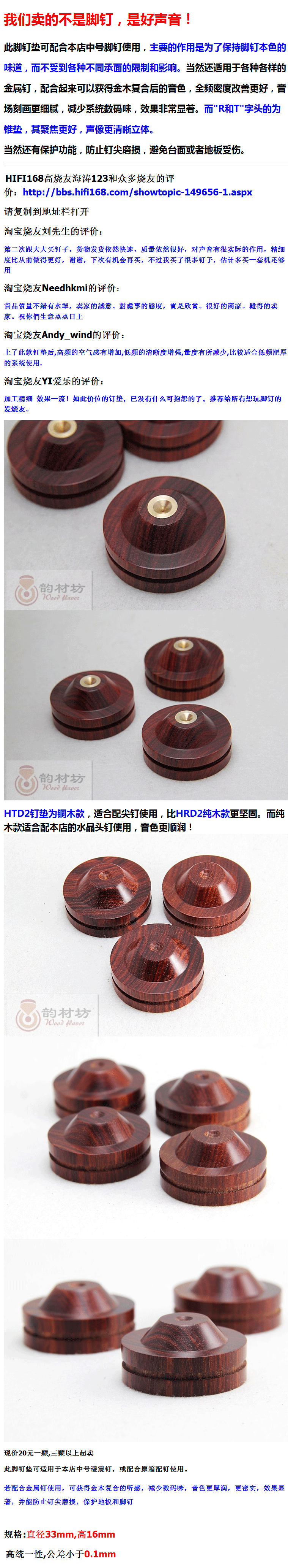 [Квадрат Юнчай] HTD2 Rosewood Hifi Speaker Shock Assusting Foot Nail Pads Landing Book Sweef Box Средний 33 мм