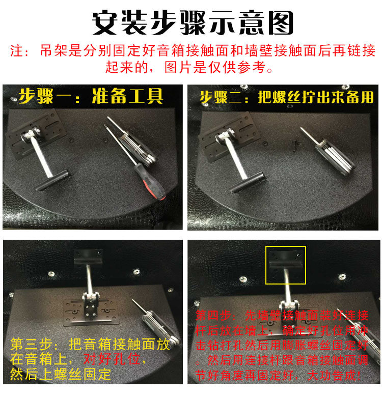 Формула: Потолочный висящий Если метод выбора 1: настенная висящая сторона висят Пожалуйста, измерьте винты и ветви на динамике