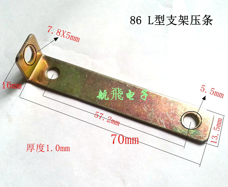 86 штук трансформатор&монтажный кронштейн NBSP; L-тип Расстояние между центральными отверстиями 57,2 мм  ;,,Длина 75 мм, ширина 13,5 мм, апертура 5,5 мм, длина L 16,5 мм, апертура 7,8х5 мм, толщина 1,0 мм. Вес 0,008 кг
