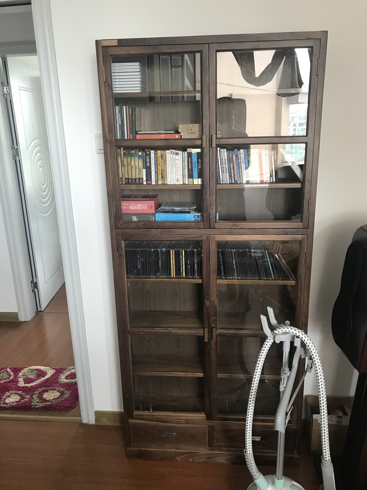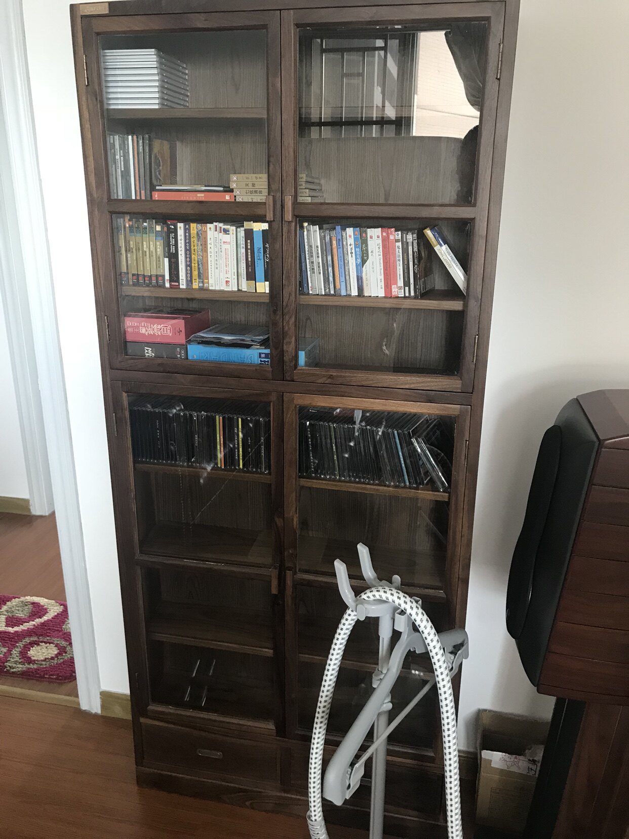 爵士机架 CD CD/DVD Wlnut Blue Light Sciess Discet Disce Discay со стеклянным шкафом для хранения бесплатная доставка