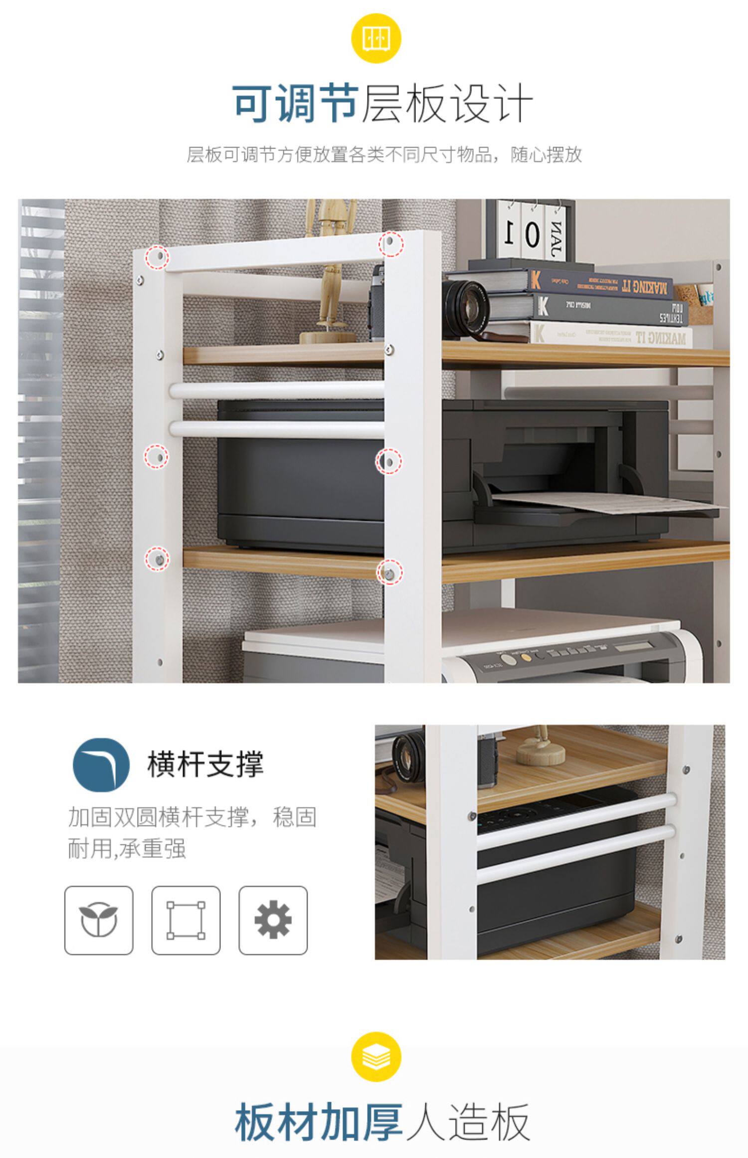 - Модель 4 -слоя белой полки+расстояние расстояния цветовых слоев орехового ореха может быть отрегулирована