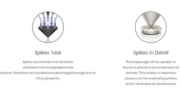 VIABLUE™QTC Spikes XL предотвращают вибрацию громкоговорителей или устройств на нижележащую поверхность. Они обеспечивают яркий, чистый и детальный звук. Шипы являются оптимальным дополнением для динамиков и таких устройств, как проигрыватели пластинок или ламповые усилители.