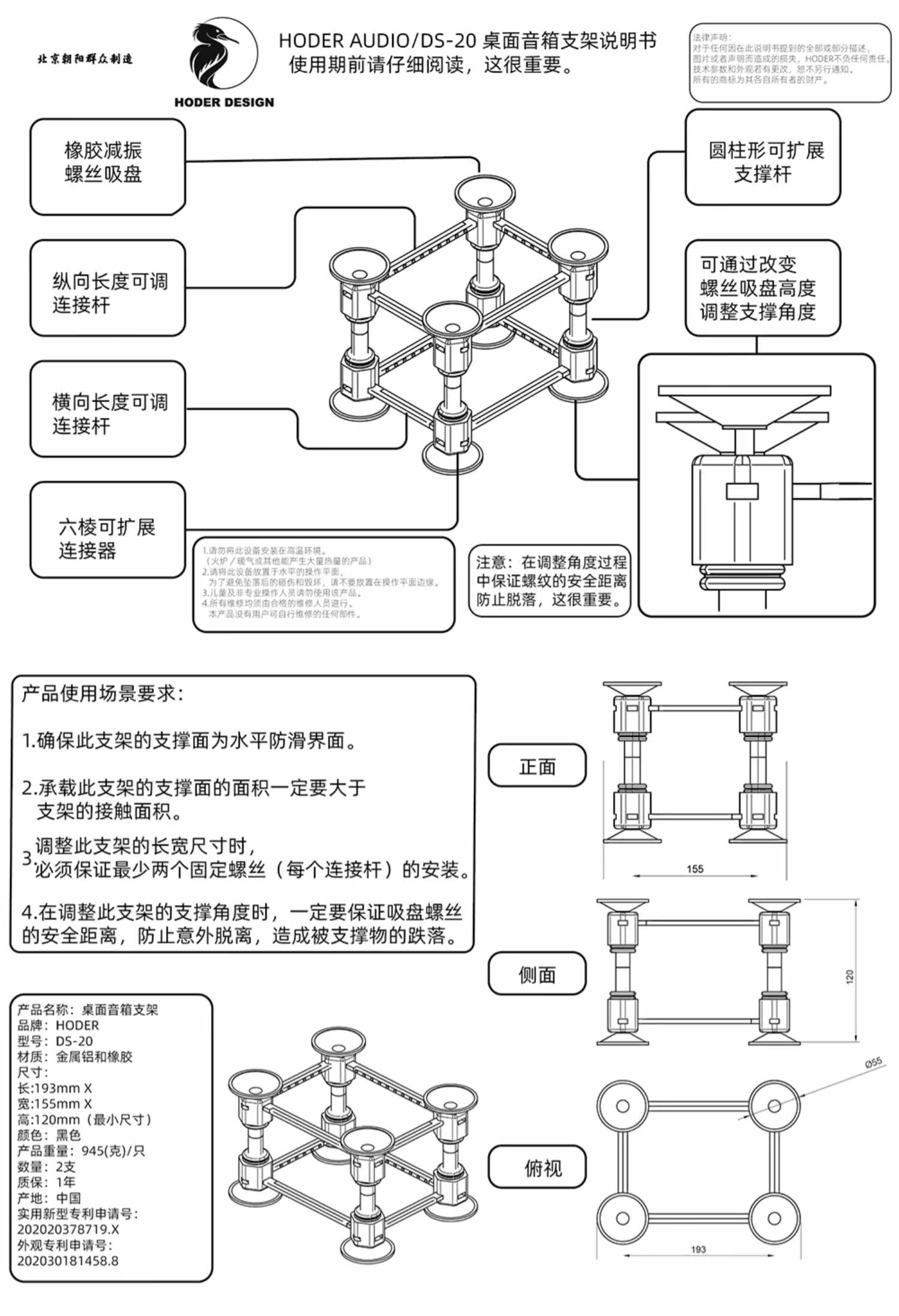 [Посадочная сеть] Hoder DS20 подвеска подвеска Antive Foot Nail можно отрегулировать на уклонные звуковые коробки на рабочем столе