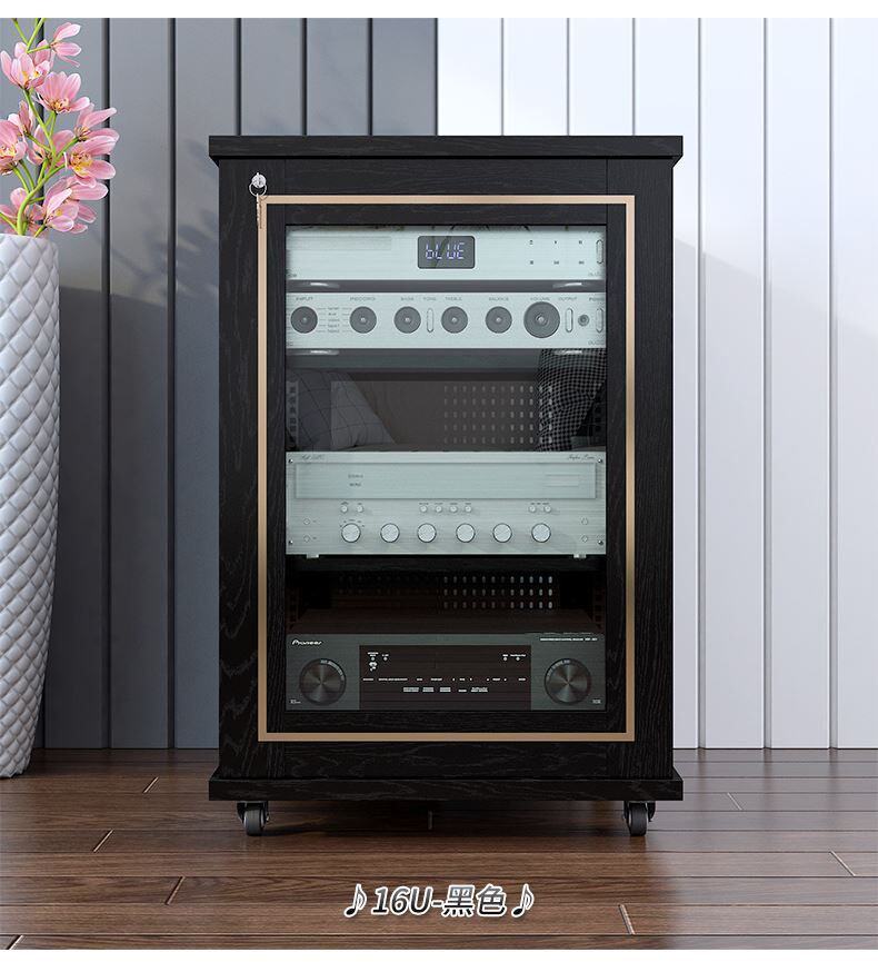- I50-Черная дверь высотой 16U с золотой кромкой (многослойная доска из массива дерева)-