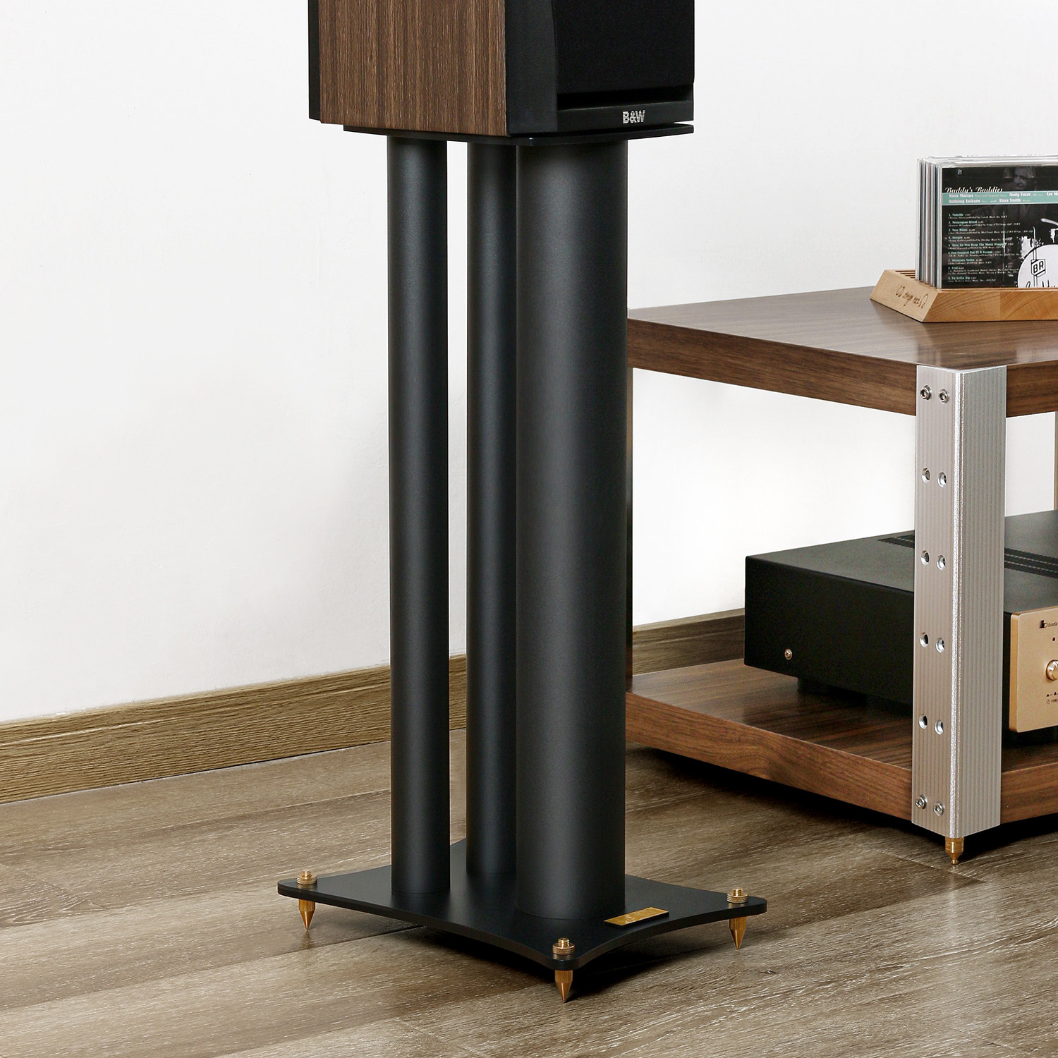 Черная металлическая книжная полка, колонки, штатив, трубка, амортизация