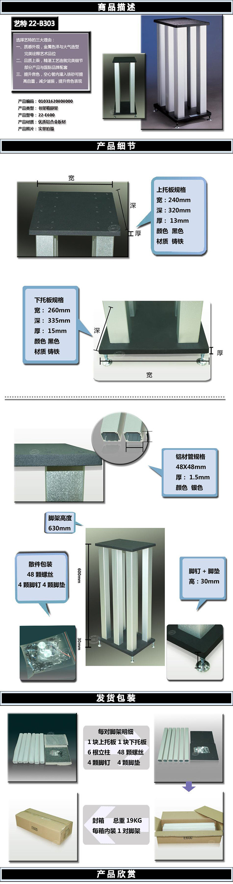 Штатив, книжная полка, металлические колонки, трубка, E600