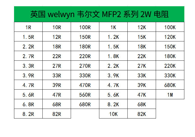 WELWYN MFP2 Серия металлических мембранных резисторов, его толерантность мала, температурный коэффициент низкий, а длинная стабильность хороша. Его структура -металлическая пленка. Металлическая мембрана осаждается с покрытием.На керамической плесени никелевой стальной конечной крышки и сварной конечной линии резистор защищен анти -дословным эпоксидным покрытием с высокой температурой. компаратор и инструмент точности компаратора.