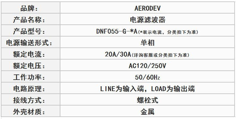 AERODEV Силовой фильтр 220V Однофазный DNF055-G-20A DNF055-G-30A болт подлинный