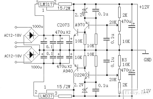 ниже анализируется принцип работы питания напряжения класса A: муниципальное электроэнергию 220V проходит через трансформатор, чтобы уменьшить напряжение выпрямителя после того, как направляющий мостик выпрямляется C1 (C2), отфильтровал обмен смешанными волнами, а затем используйте превосходный LM317 и производительность LM317 и производительность схемы постоянного тока, состоящей из R1 (около 160 мА, что может привести к тому, что любая чистая цепь усилителя. Если ток больше, измените значение сопротивления R1 ), цепь постоянного тока может блокировать шум мощности и эффективно отступить эффективно соединять интерференцию после первой стадии через источник питания. После постоянного тока источник питания составляет VT1 (VT2), VD1 (VD2) и RP1 (RP2), R2— R5) представляет собой цепь настройки отбора проб ошибки напряжения и через регулирующую трубку VT3 (VT4) R6 (R7), чтобы изменить падение напряжения направления в трубе регулировки и использовать ток диверсии для достижения цели напряжения Напряжение.Регулировка трубки и нагрузки параллельна, а значение сопротивления невелико.