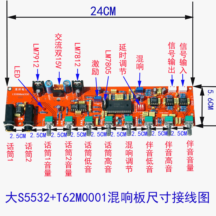 микрофон, потенциометрЦентральное расстояние: 2,5 см. Размер окружной платы:24x7.6x2.3cm.