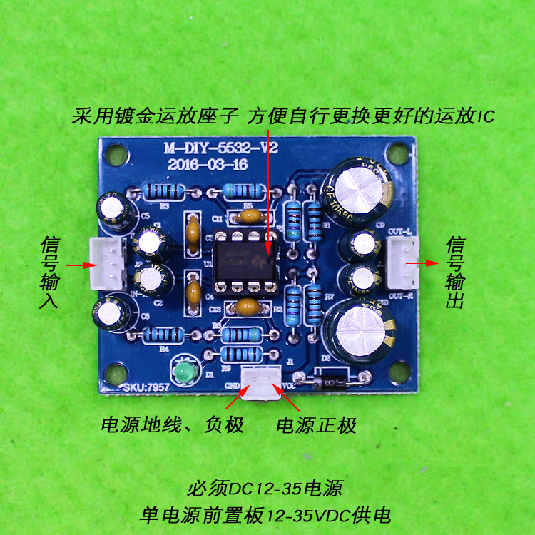 Большая версия переднего размещения основана на OP -Amp NE5532 Wang в качестве ядра, и она сделана с высококачественными конденсаторами, с высоким содержанием пяти -корровых кольцевых мембранных мембранных резисторов.Амплификация множества раза в 5 раз, подходит для некоторого использования источника звука с низким чувствительностью., По сравнению с общим передним усилителем, есть следующие характеристики: