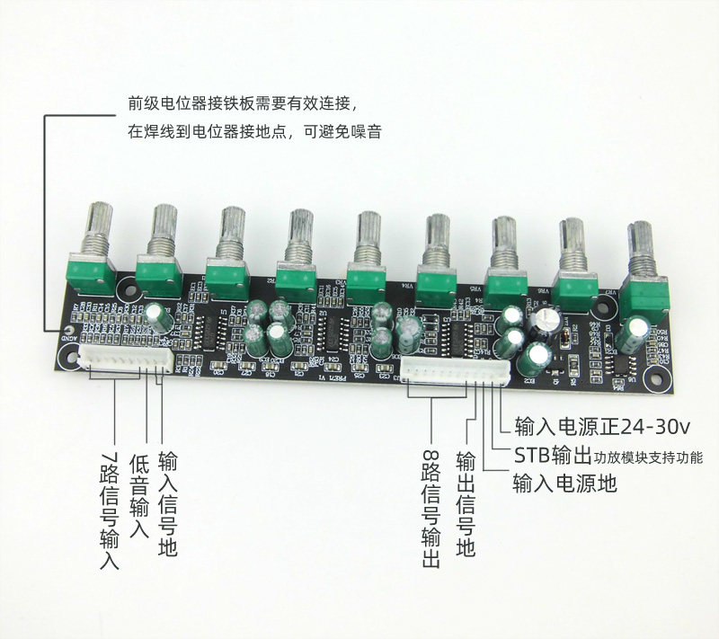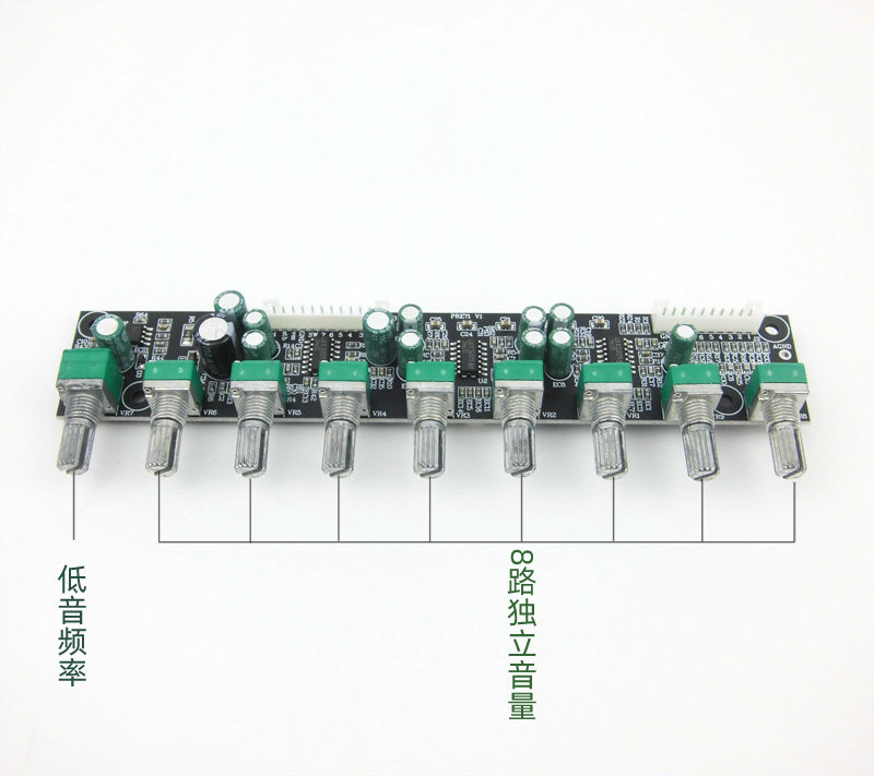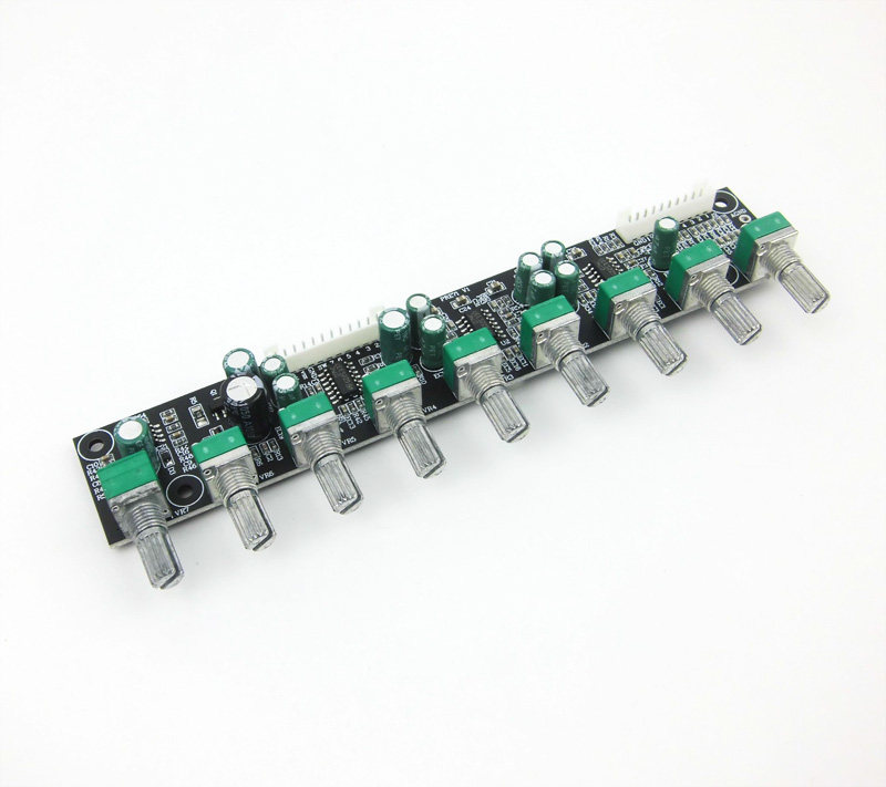 Только функция усиления сигнала, без тона и общего громкости,(Вы можете добавить потенциометр общего объема отдельно)СущностьКаждый объем регулируется независимо, что может облегчить позиционирование и регулировку.Басовый звук может быть отрегулирован, чтобы адаптироваться к различному рогу сабвуфера, решая проблему неудобной настройки некоторых игроков переднего уровня.И Small Shop 7.1.