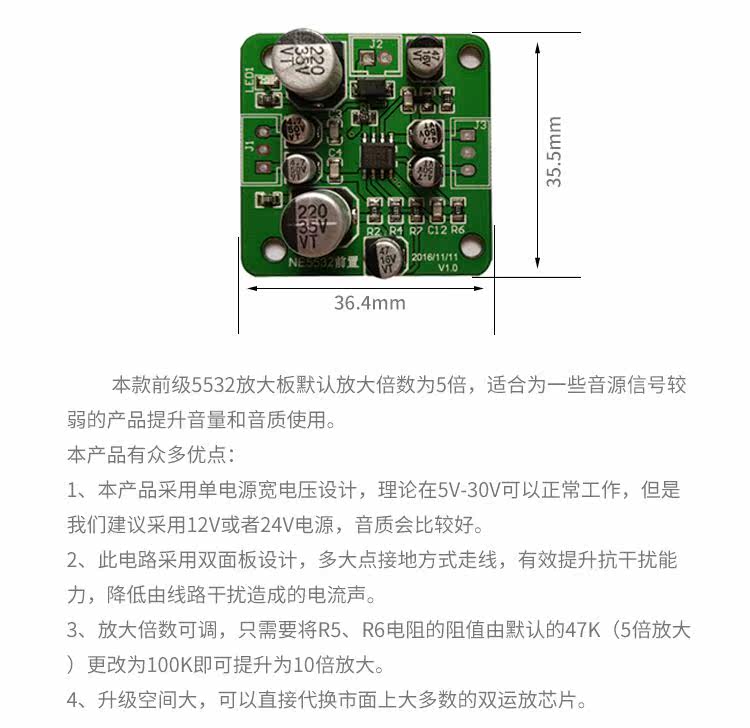 5532 Предварительные предварительные пластины с одним электрическим источником аудио воспроизводится двойная территория с фронтом размещения большой платы