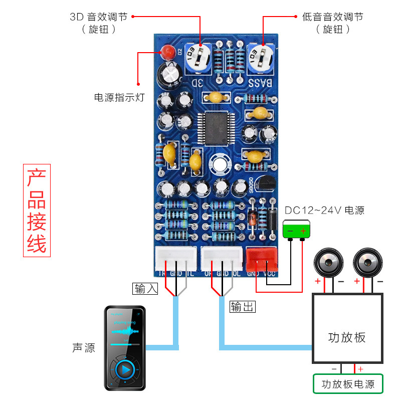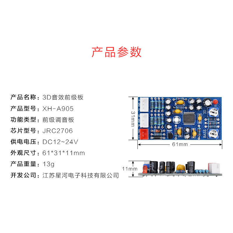 Xh-a905 Предварительная плата благоустройства звукового эффекта JRC2706 Subwoofer 3D Effect Hybrid Heavy Bass процессор