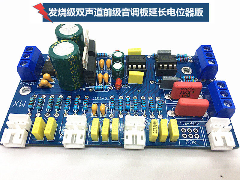 Двойной операционный усилитель на уровне страсти с двойным усилителем переднего уровня двойной AC 12V-18V передний матч Тонная доска имеет яркие тройки, круглый средний диапазон и полный бас. . Представлен с четырьмя точными шариками для удлинения потенциометра, хорошим звуковым эффектом и изысканными материалами, подходящими для всех видов модификаций DIY. Размер печатной платы 10x5,5 см.