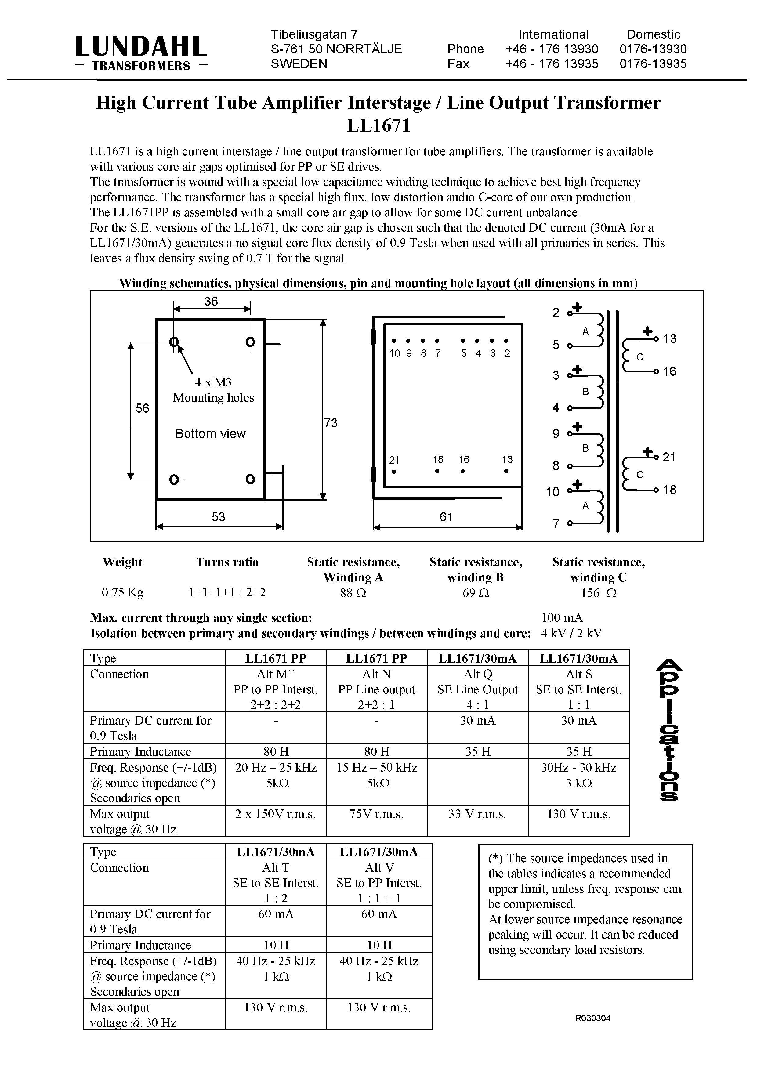 Шведский оригинал Lundahl LL1671 30MA продвигает Cross Transformer
