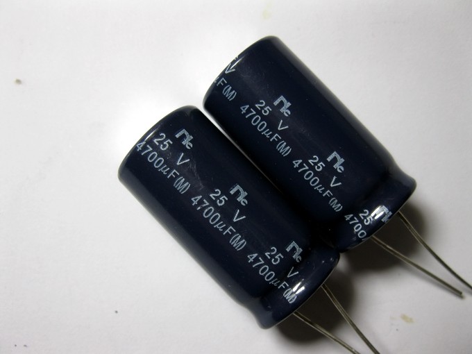 Теперь основная фильтрация платы усилителя (оригинальный желтый 6800UF был переключен на синие 4700UF).