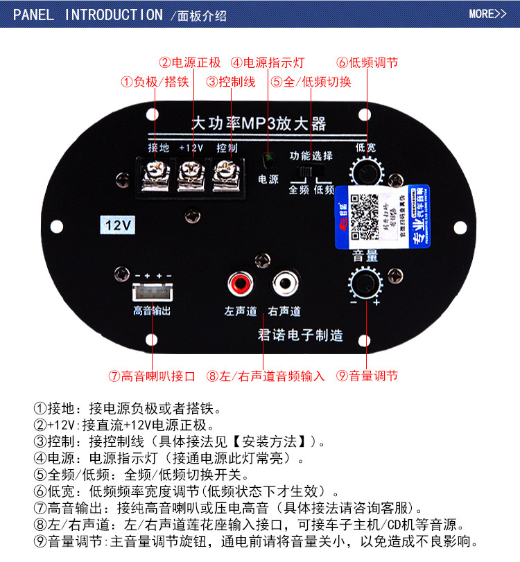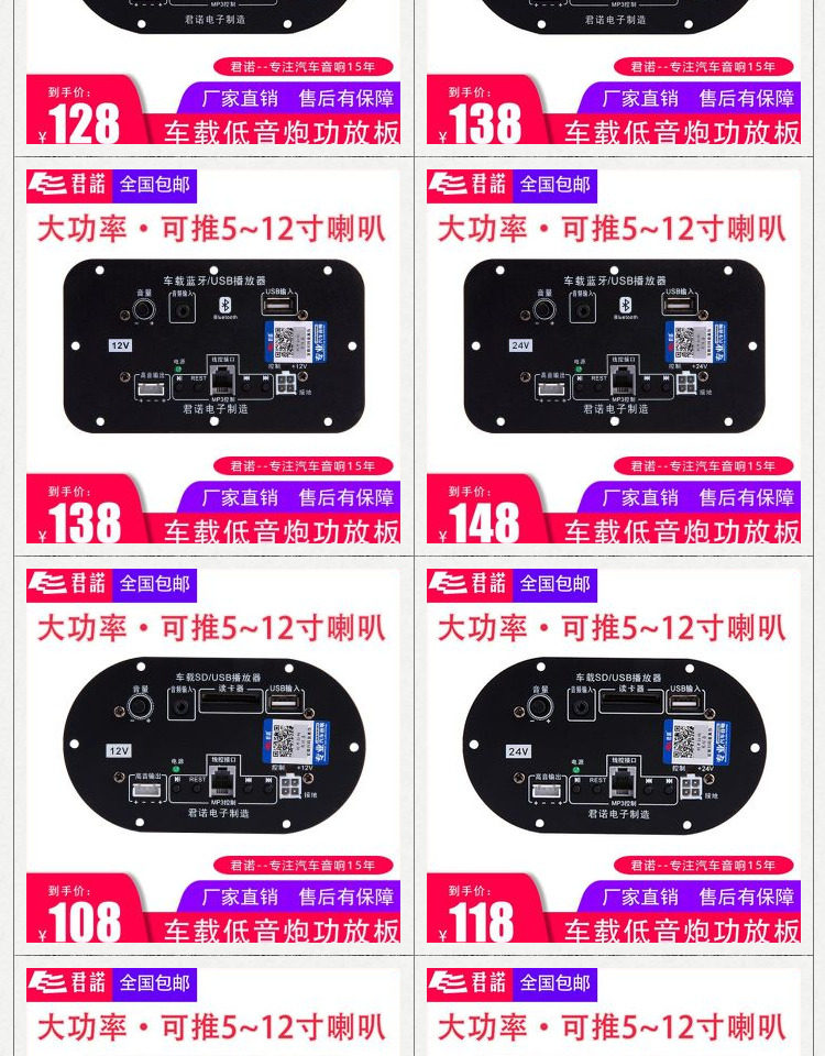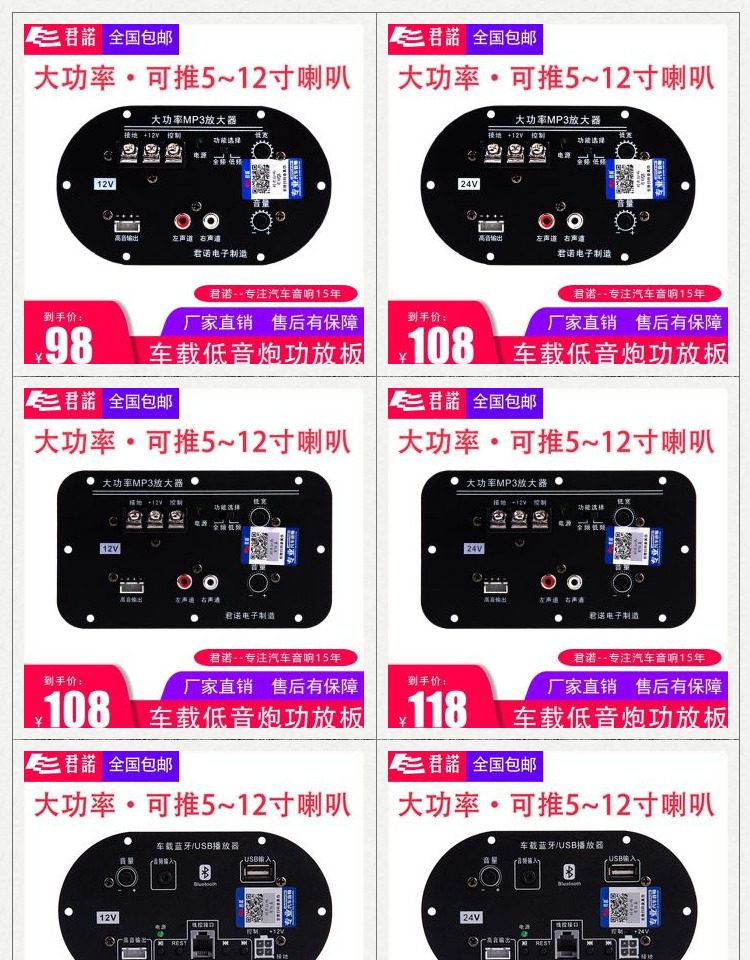 Junnuo Base Bass Gong Panel 12 В высокий бас с источником мощности усилитель мощности заменить 6 -Inch Mp3
