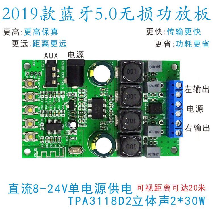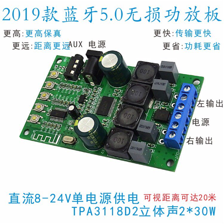 Bluetooth 5.0 Беспроводной аудио TPA3118D2 Высокопроизводительный трехмерный трехмерный звук 8-24 В.