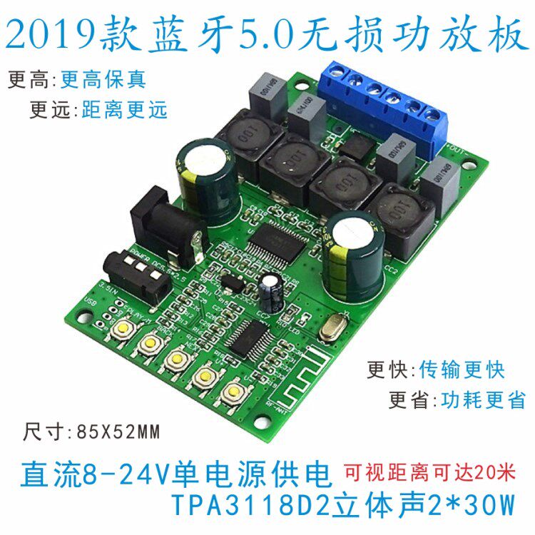 Bluetooth 5.0 Беспроводной аудио TPA3118D Высокая мощность 2 × 30W8 Европейская высокая высокая форма реальная трехмерная доска усилий мощности Bluetooth Bluetooth