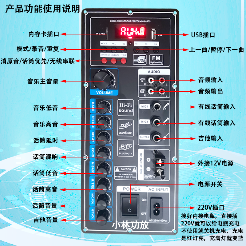 Модифицированный микрофон, универсальные колонки, цифровая материнская плата, bluetooth, высокая мощность, DIY, 12v