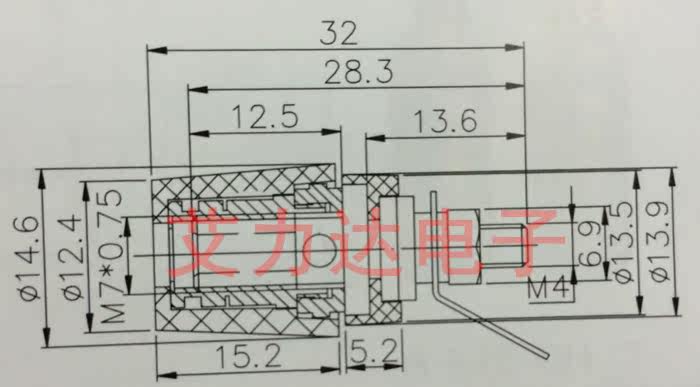 Длина винтного вала: 12 мм, диаметр винтного вала: 4 мм, наружный диаметр изолятора: 6,6 мм,