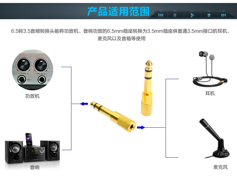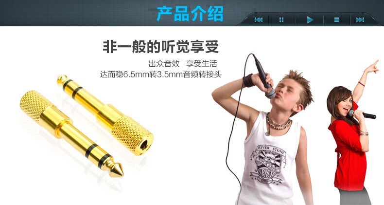 Описание интерфейса: Один конец - 6,5 мм микрофона, один конец - 3,5 мм аудиоразъем