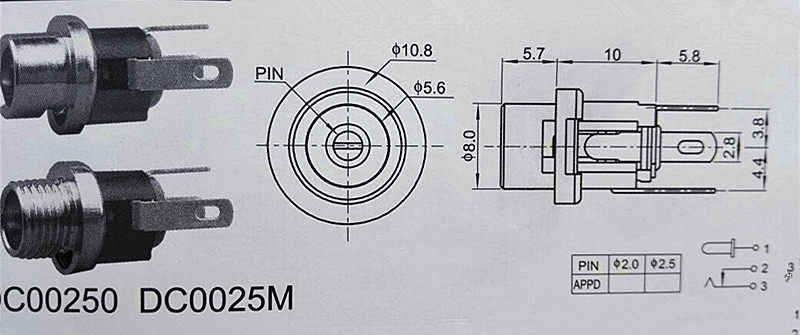 DC Power Socket DC-025 Винт Винт Металлическая головка 5,5-2,5 мм