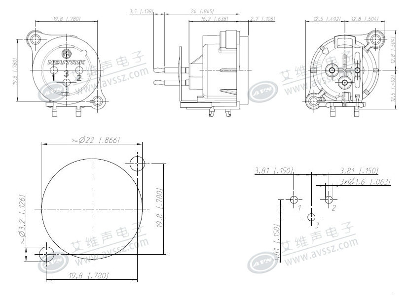 Neutrik Kannon Gongzhong xlr Balance NC3MAAV Схема вертикальной печатной платы сварки