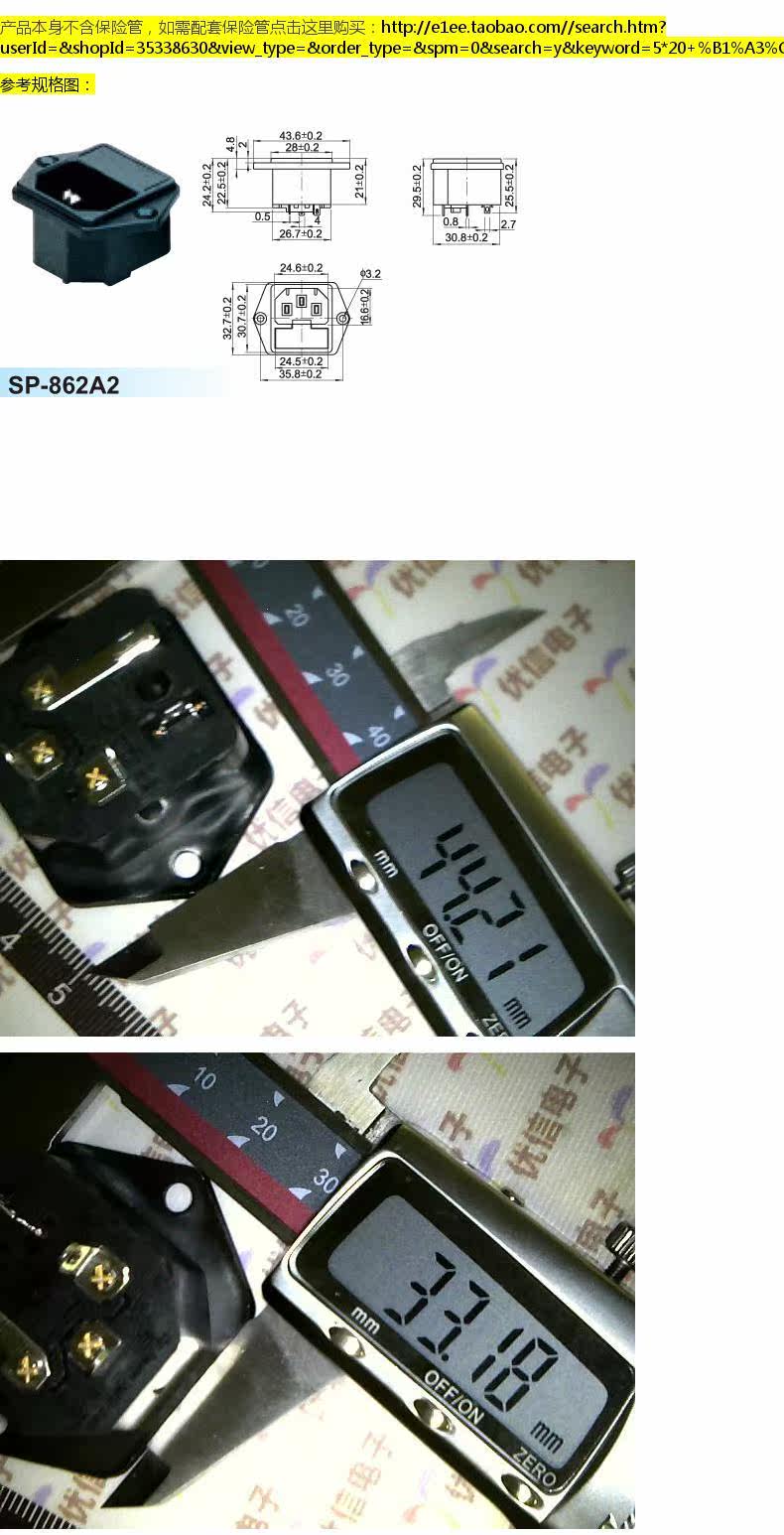 SP-862 с ухом/AC Power Socket 10a/250a/Three-Foot/с страховой трубкой 5*20 мм