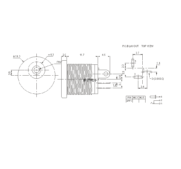 Yueyang | DC Power Socket DC-022 с резьбой с гайками 5,5*2.1
