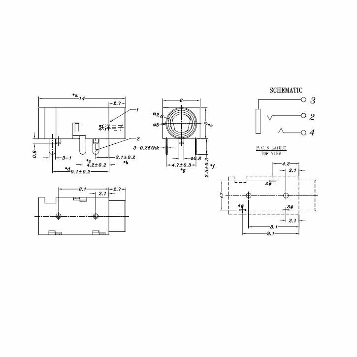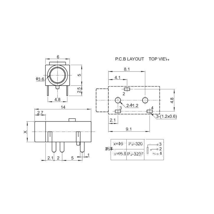 Yueyang | Socket Socket PJ-320 3,5 мм аудио-видеосел