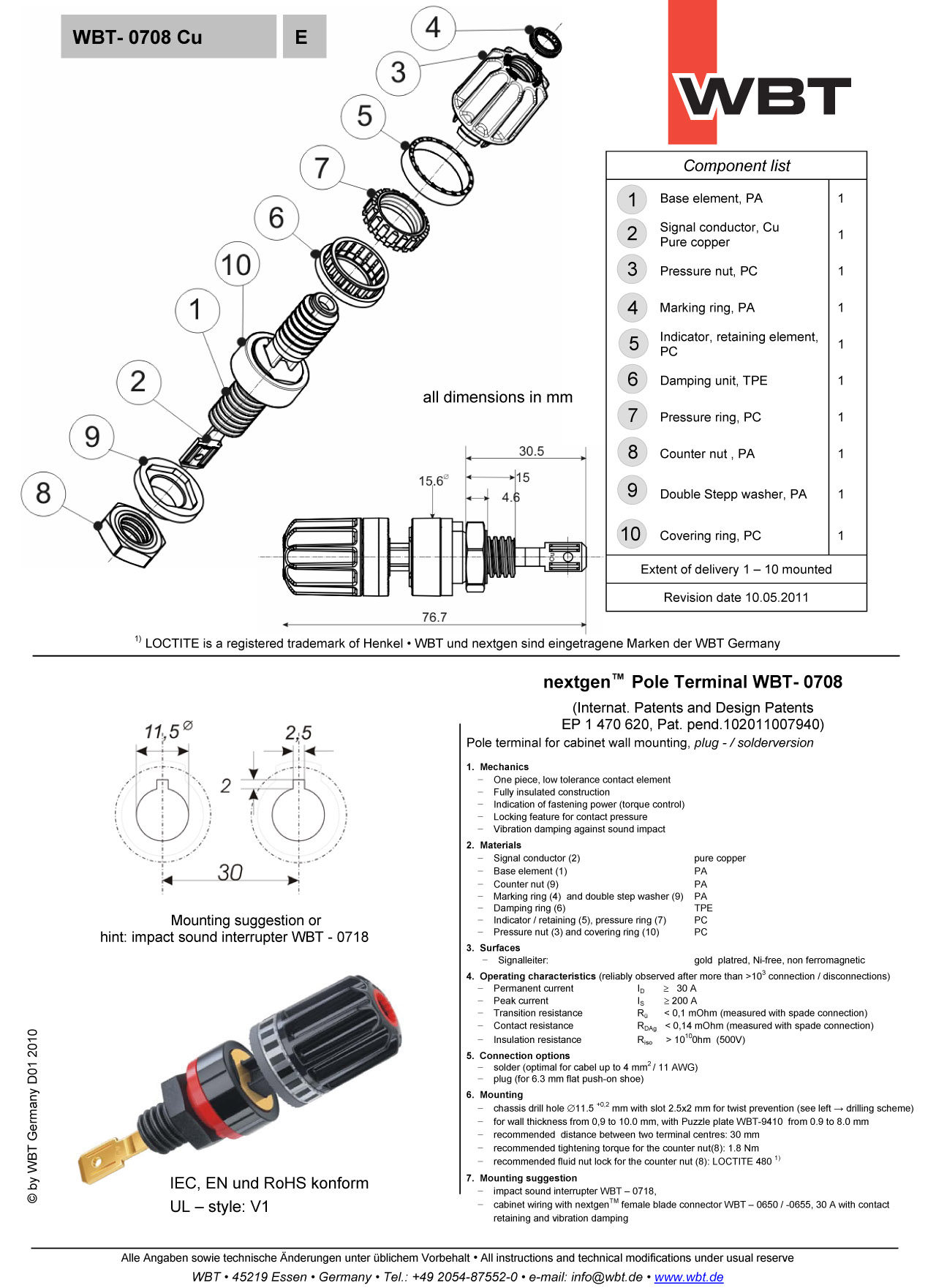 Германия оригинальная WBT 0708 Cu медная версия супер -значение лихорадка